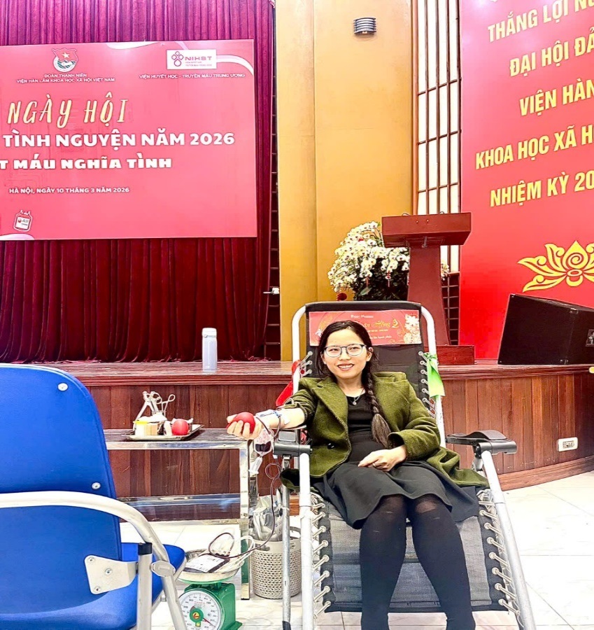Hưởng ứng phong trào hiến máu tình nguyện với thông điệp “Giọt máu nghĩa tình”, ngày 10/3/2026, viên chức và người lao động của Viện Nghiên cứu Con người, Gia đình và Giới đã tích cực tham gia Chương trình hiến máu tình nguyện do Viện Hàn lâm Khoa học xã hội Việt Nam tổ chức tại trụ sở số 01 Liễu Giai, Hà Nội.