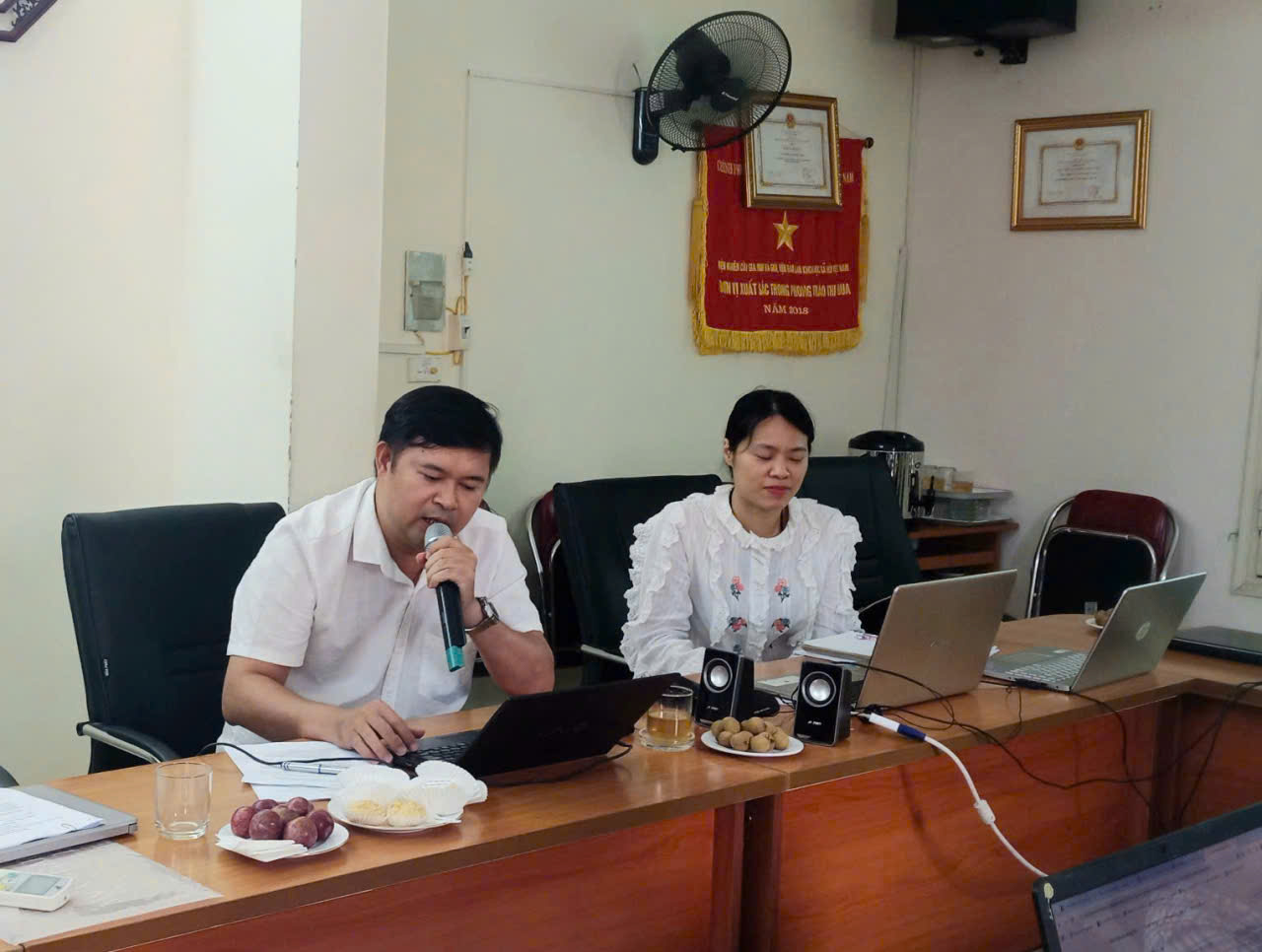 1- TS. Phan Thanh Thanh, chủ nhiệm nhiệm vụ trình bày báo cáo “Khung phân tích quyền tiếp cận nguồn nước bảo đảm sinh kế bền vững của người dân nông thôn: Một số vấn đề lý luận”