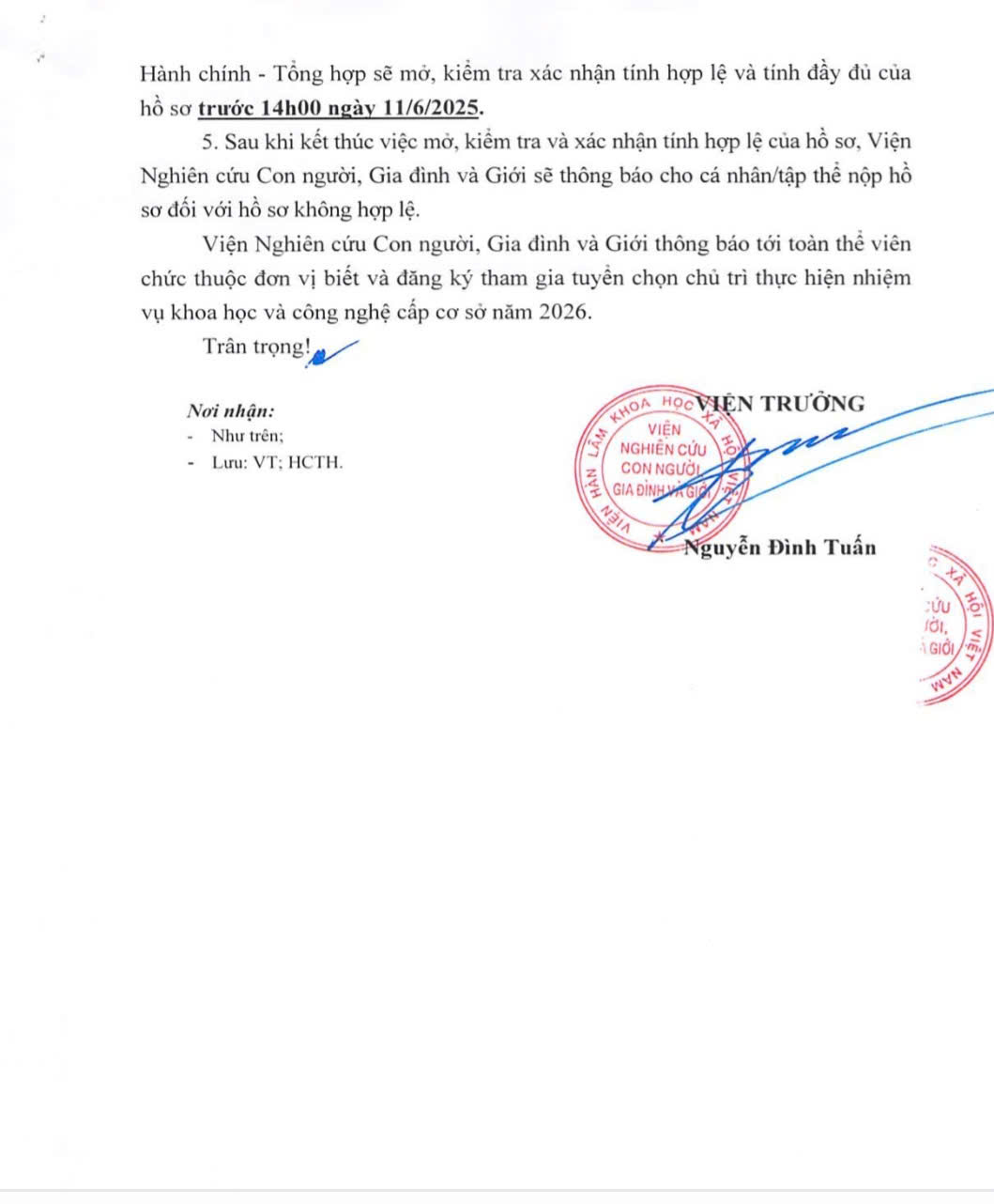 Viện Nghiên cứu Con người, Gia đình và Giới trân trọng thông báo Danh mục đề xuất thực hiện nhiệm vụ khoa học và công nghệ cấp Cơ sở 2026.