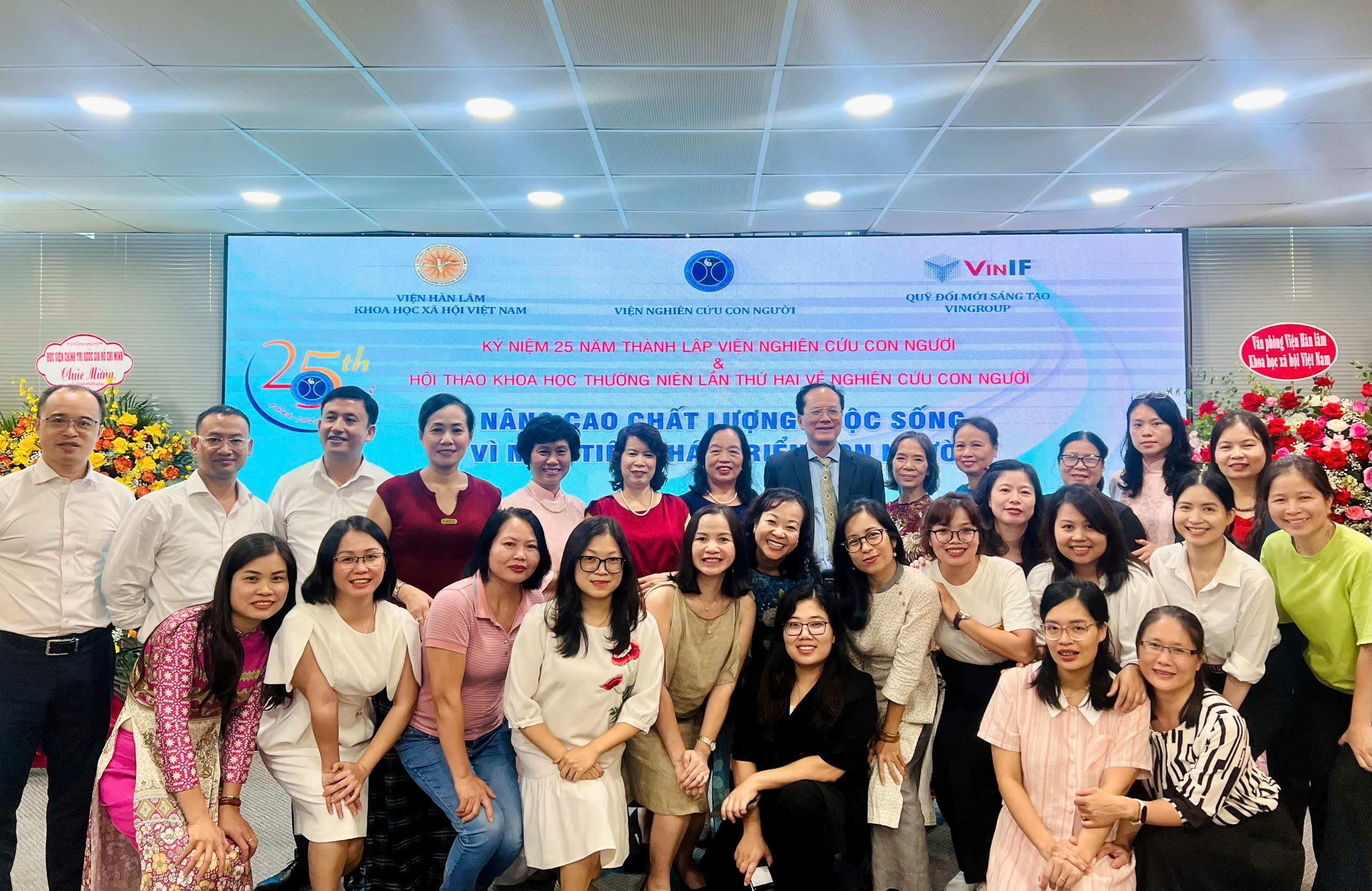 Ngày 24/9/2024, Viện Nghiên cứu Con người trực thuộc Viện Hàn lâm Khoa học xã hội Việt Nam (Viện Hàn lâm) tổ chức Hội thảo khoa học thường niên lần thứ hai về Nghiên cứu Con người với chủ đề “Nâng cao chất lượng cuộc sống vì mục tiêu phát triển con người”. Đây cũng là sự kiện chào mừng lễ kỉ niệm 25 năm thành lập Viện Nghiên cứu Con người (9/1999-9/2024). Quỹ Đổi mới sáng tạo Vingroup (VINIF) tham gia tài trợ cho Hội thảo này. Hội thảo diễn ra tại hội trường và được phát trực tiếp trên trang facebook của Tạp chí Nghiên cứu con người, Viện Nghiên cứu Con người.