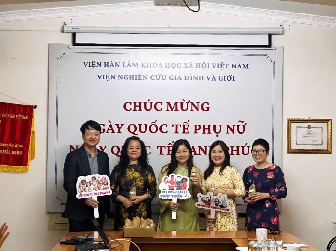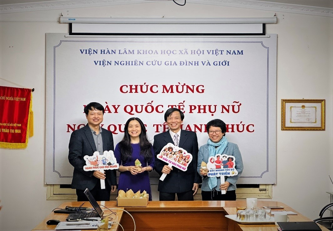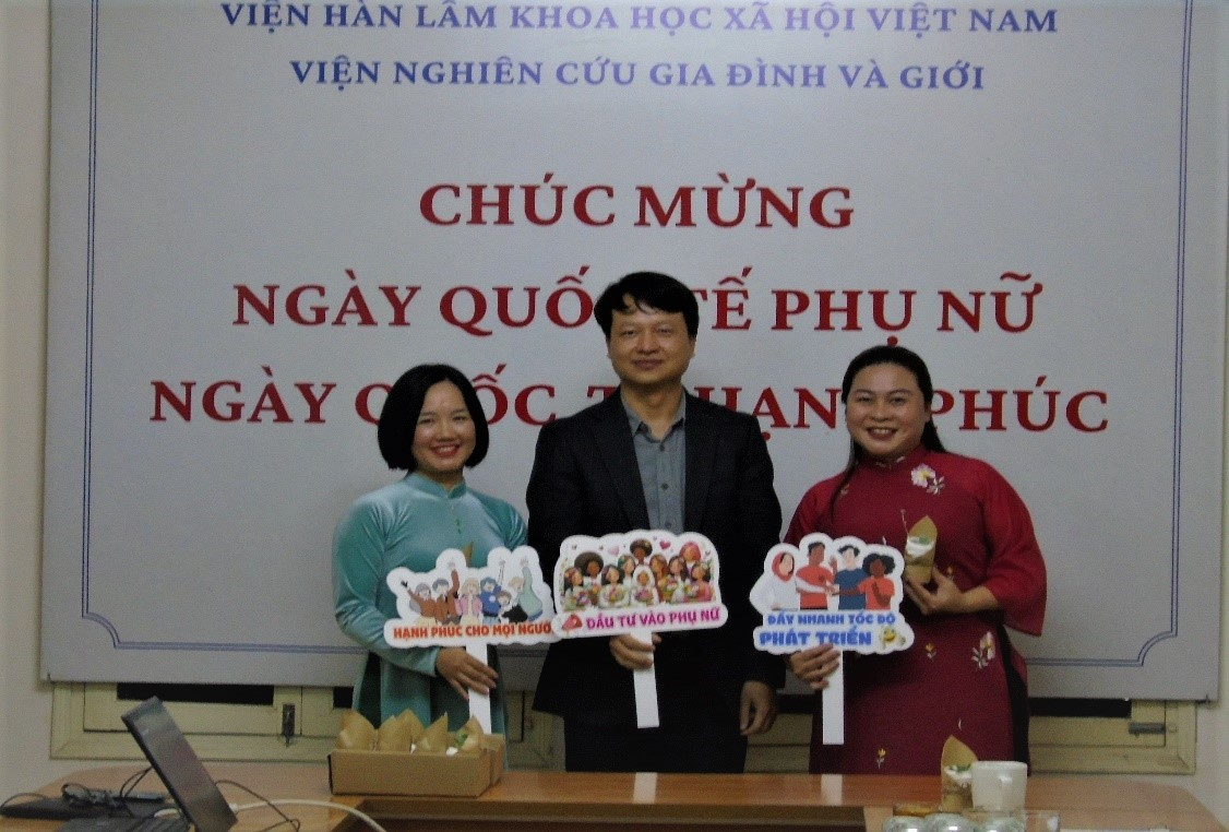 Chiều 8/3/2024, Viện Nghiên cứu Gia đình và Giới đã tổ chức hoạt động chào mừng Ngày Quốc tế Phụ nữ. TS Nguyễn Đình Tuấn, Viện trưởng đã gửi những lời chúc tốt đẹp đến toàn thể nữ viên chức, người lao động của Viện đồng thời khích lệ các cán bộ nữ tiếp tục phát huy vai trò trong lĩnh vực nghiên cứu về hôn nhân, gia đình, giới, phụ nữ, người cao tuổi và trẻ em, để thúc đẩy bình đẳng giới, tăng quyền năng kinh tế và giảm đói nghèo cho phụ nữ.